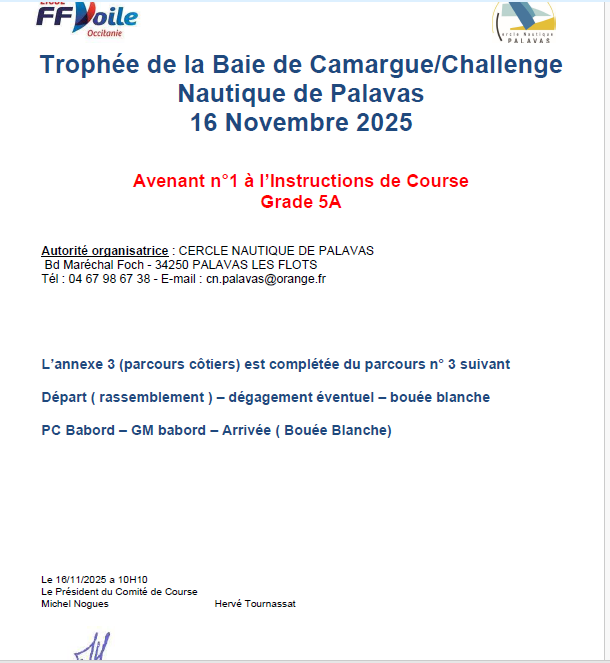(Autorités organisatrices : le Cercle Nautique de Palavas, la Société Nautique du Grau du Roi / Port Camargue et le Yacht Club de La Grande Motte.)